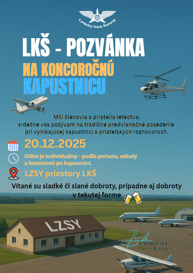 Pozvánka na koncoročnú kapustnicu by Mário Zeleňák on 14. decembra 2025 with Nekomentované Milí členovia a priatelia letectva, srdečne vás pozývam na tradičné predvianočné posedenie pri vynikajúcej kapustnici a priateľských rozhovoroch.